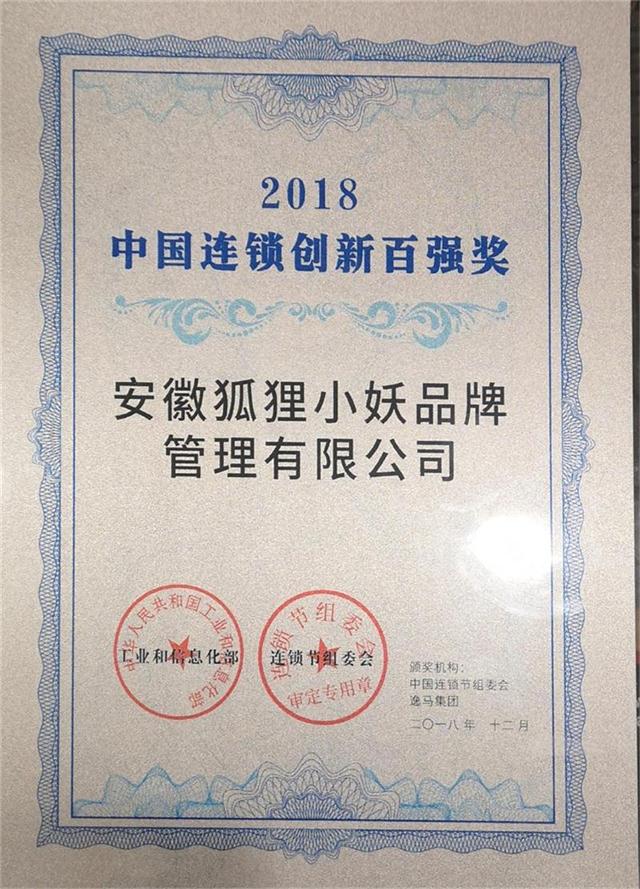 再获殊荣 | 狐狸小妖荣获2018中国连锁创新百强奖